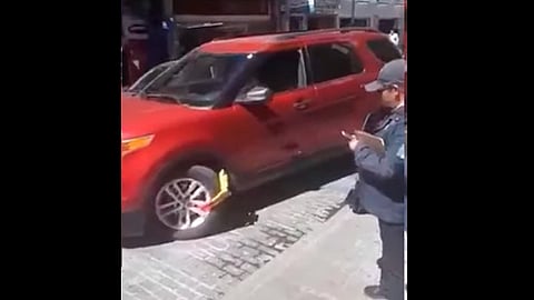 Pachuca, Hidalgo (Rasainforma.com).- Una conductora trató de evadir el pago del parquímetro y al hacerlo le fue colocado un inmovilizador en una de las llantas, hecho que desató su furia.