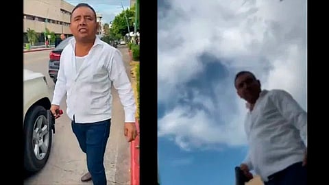 Armendáriz grabó todo el momento, incluso cuando cayó al suelo continuó grabando. "¡Bájale de huevos, verga!", advirtió el guardaespaldas.