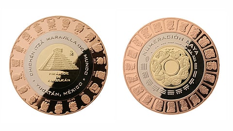 La medalla que ilustra el legado de la cultura Maya, es una pieza exclusiva y se encuentra a la venta con un estuche y folleto explicativo en 5 idiomas distintos.
