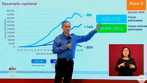Ciudad de México (Rasainforma.com).- El subsecretario de Prevención y Promoción de la Salud, Hugo López Gatell, informó que este 26 de julio, México acumula 390 mil 516 casos confirmados de Covid-19.