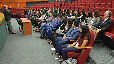 Morelia, Michoacán (MiMorelia.com).- Para que conozcan de la materia civil tanto en primera como en segunda instancia de la voz de quienes imparten y administran la justicia en el estado, el magistrado Jorge Reséndiz García, titular de la Tercera Sala Civil del Supremo Tribunal de Justicia, recibió a un grupo de estudiantes del primer semestre de la Licenciatura en Derecho de una universidad privada en el estado.