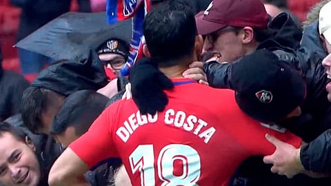 El delantero brasileño nacionalizado español Diego Costa, anotó el segundo y definitivo gol del encuentro, mismo que celebró abrazándose con los aficionados del Atlético, acción que le costó la segunda amarilla y la expulsión.