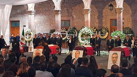 Rodeado de coronas florales y los cuatro féretros de madera colocados en el primer patio de Palacio de Gobierno, con la fotografía de cada uno de los servidores públicos, el gobernador aseguró que le duele mucho la pérdida de los funcionarios y agregó que no descansará hasta lograr el Michoacán por el cual siempre trabajaron. Además, de destacar que no sé olvidará el trabajo que realizaron en cumplimiento de su deber.