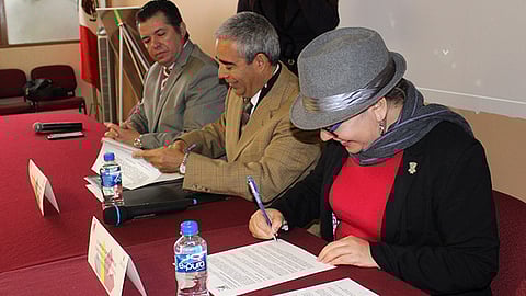 Por parte de la Comisión Ejecutiva firmó la titular Cristina Cortés Carrillo en tanto que por el Colegio de Notarios hizo lo propio su presidente, Martín Alfredo Palomares Estrada.