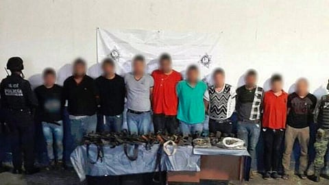 Gabriel Zamora, Michoacán (MiMorelia.com).- Este sábado en este municipio, elementos de las secretarías de la Defensa Nacional (Sedena) y de Seguridad Pública (SSP) detuvieron a 10 presuntos integrantes de la célula delictiva conocida como Los Viagra y aseguraron 14 armas, tres vehículos, cartuchos y una granada.