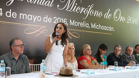 Durante el acto, la presidenta de la asociación, Rosalía Sánchez, expresó que en esta 64 entrega del Micrófono de Oro, donde se premiará principalmente a la productora Karla Estrada, es una oportunidad para mostrar lo bello que tiene Michoacán y que no se conoce en otras partes del país y del mundo.