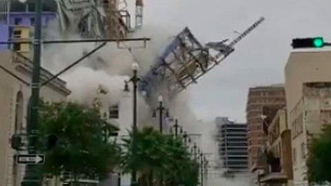 El impactante momento en que gran parte del hotel Hard Rock Hotel en Canal Street fue captado en video y difundido en las redes sociales, la escena muestra a la gente aterrorizada corriendo de un lugar a otro.