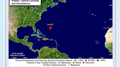 El meteoro sostiene vientos de 155 kilómetros por hora (km/h), "Nicole" se encontraba 520 kilómetros (km) al suroeste de Bermuda y se desplaza con rumbo noroeste a 11 km/h sobre el Atlántico.