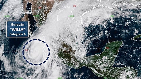 El organismo indicó que Willa presenta vientos de 250 kilómetros por hora y rachas de 305 kilómetros por hora y se mueve hacia el norte a 13 kilómetros por hora.