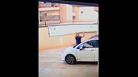 En las imágenes se ve como el hombre captura al cachorro de raza Shin Tzu, quien por la fuerza se resbala, mientras el hombre cae al suelo y el perrito sale corriendo, al parecer sin afectaciones.