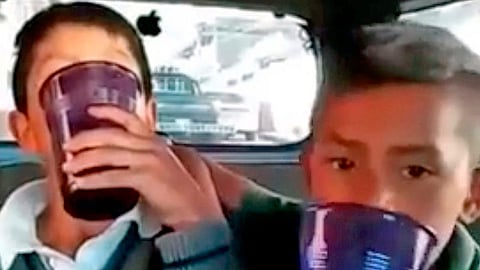 En ese momento, quien graba el video y que por su voz pareciera ser un adulto, les alcanza el refresco de toronja para completar el trago.