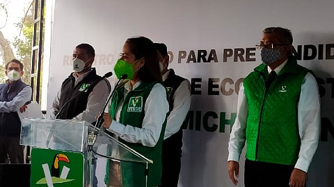 Morelia, Michoacán (MiMorelia.com).- La dirigente nacional del Partido Verde Ecologista de México (PVEM), Karen Castrejón Trujillo, informó que mantienen comunicación con los partidos Morena y del Trabajo ante la posibilidad de formalizar alianzas electorales en al menos cinco entidades, entre las que no está contemplado Michoacán.