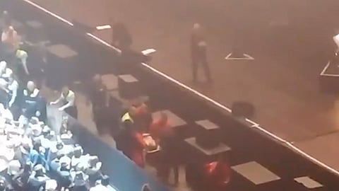 El español regresó al escenario minutos más tarde, esta vez empujado en una silla de ruedas por Serrat; "queridos amigos, estas cosas solo me pasan en Madrid, lo siento muchísimo", se escucha al cantante decir en un video que se ha difundido en redes.