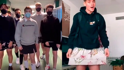 España (MiMorelia.com).- Miles de jóvenes se solidarizaron con un compañero que fue regañado por usar falda en la escuela, por lo que los chicos hicieron lo mismo y se presentaron usando esta prenda.
