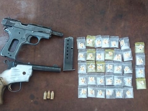 A los detenidos les fueron aseguradas dos armas de fuego calibres .9mm y .22, así como 34 dosis de cristal.