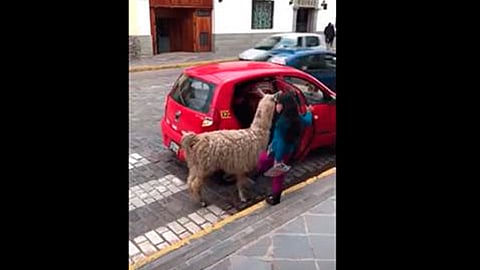 El hecho se registró en la ciudad de Cusco y dio rápidamente la vuelta al mundo ya que no solo no solo porque el animal que subió al taxi, sino por el diminuto tamaño del automóvil y la tolerancia del chofer para permitirlo.