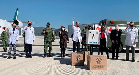 Apodaca, Nuevo León (MiMorelia.com).- La titular del Instituto Mexicano del Seguro Social (IMSS) en Nuevo León, doctora Karla Guadalupe López López, acudió a la recepción del primer cargamento con mil 950 vacunas contra Covid-19 destinadas al estado, las cuales arribaron a las 13:45 horas este 28 de diciembre, a la Base Aérea Militar No. 14, en el municipio de Apodaca.