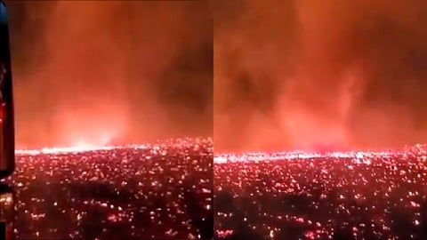 Las imágenes que compartió el usuario de Internet resultaron impactantes ya que además del tornado de fuego, de fondo se escucha la sirena que avisa de tales fenómenos.