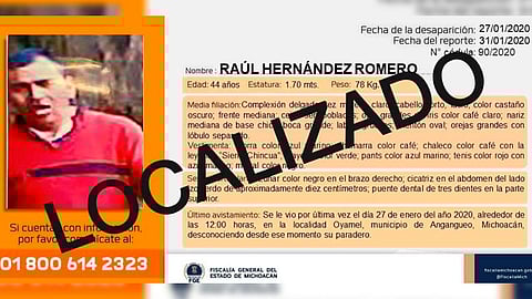 Hernández Romero había sido reportado como desaparecido el pasado 27 de enero; fue visto por última vez en el hongo de la comunidad de El Oyamel, perteneciente al municipio de Áporo.