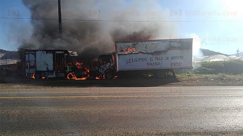 Purépero, Michoacán (MiMorelia.com/RED 113).- Dos vehículos de carga fueron incendiados por integrantes de la Coordinadora Nacional de Trabajadores de la educación (CNTE), en los limites de Purépero y el municipio de Chilchota.