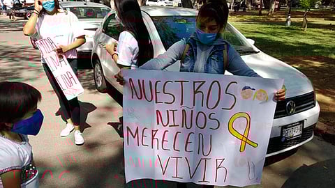 Previo a la marcha, Rosa María Gómez, madre de familia, destacó que la manifestación la decidieron llevar a cabo porque los doctores que atienden a sus hijos ya no pueden con la responsabilidad, incluso algunos quieren renunciar a sus puestos, dijo, porque las autoridades no les otorgan las herramientas necesarias para que los niños continúen con su tratamiento y las quimioterapias.