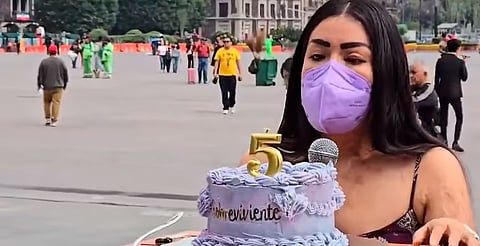 Morelia, Michoacán (MiMorelia.com).- La saxofonista mexicana María Elena Ríos, se manifestó en el Zócalo de la Ciudad de México (CDMX) a cinco años de que fuera agredida por tres hombres con ácido, los hechos ocurrieron el 9 de septiembre de 2019.
