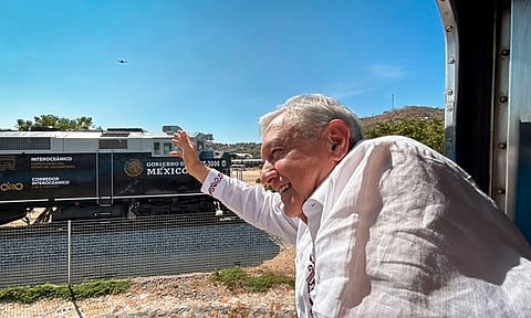 El mandatario mexicano constata este sábado los avances del tramo Coatzacoalcos-Teapa de la línea que va a Palenque, Chiapas, y se une al Tren Maya, refirió en redes sociales.