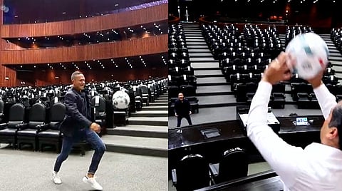 Fue por un video que él mismo compartió, en el que muestra al jugador mexicano que hace una dominada para dar un remate al balón y "meter un gol en el Salón de Sesiones", razón por la que fue duramente criticado por legisladores de la oposición.