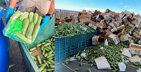 Los agentes descubrieron y extrajeron un total de mil 419 paquetes ocultos dentro del envío de calabaza.