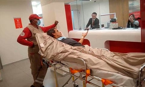 Enfermo y en camilla, obligan a cliente a presentarse en un banco para trámite