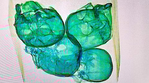 Los Guardias eligieron diversos envíos y los sometieron a una inspección, apoyados de una máquina de rayos X, detectando en uno de ellos material orgánico anormal, por lo que procedieron a efectuar la revisión de forma manual.