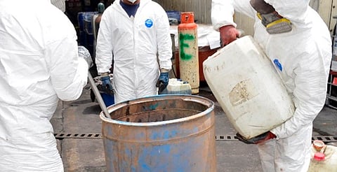 4 mil 859 litros 815 mililitros de sustancias líquidas, como acetato de plomo, ácido fenilacético, hidróxido de sodio, ácido tartárico, cloruro de mercurio, ácido clorhídrico y manitol