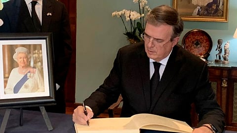 Reino Unido (MiMorelia.com).- Este sábado el titular de la Secretaría de Relaciones Exteriores (SRE), Marcelo Ebrard llegó a Reino Unido, para estar presente, a nombre del Gobierno de México, en los funerales de la reina Isabel II.