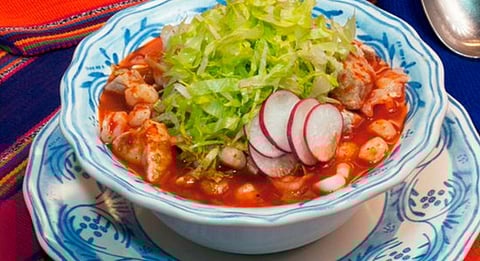 Para que el platillo sea lo más saludable posible este debe contener una taza y media de pozole (entre 90 y 100 gramos), 60 gramos de carne y verdura al gusto (rábano, lechuga, cebolla, chile y limón).