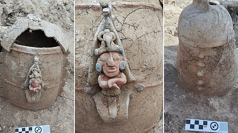 Morelia, Michoacán (MiMorelia.com).- Especialistas del Instituto Nacional de Antropología e Historia (INAH), encontraron una urna funeraria con la representación del dios del maíz entre las obras del Tramo 7 del Tren Maya.