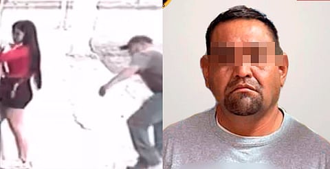 Posteriormente, baja el señalado, quien viste un pantalón de mezclilla y playera gris, y camina hacia la mujer quien intenta entrar a su casa, en ese momento, rápidamente se agacha para morderle un glúteo, luego corre a su vehículo y huye.