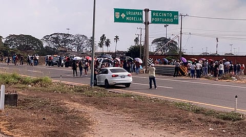 En el tuit dieron a conocer que el bloqueo es en el kilómetro 309 de la autopista Uruapan-Lázaro Cárdenas (directo) y en el entronque de la autopista Pátzcuaro-Uruapan.