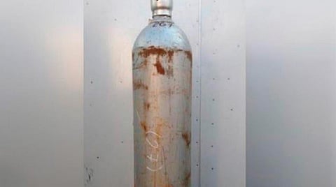 El cilindro es uno con serie 4862294, de 68 kilogramos y 60 kilos vacíos, color plata, altura de 1.40 metros, 25.5 centímetros de diámetro.