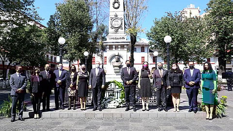 Uruapan, Michoacán (MiMorelia.com).- El gobernador Alfredo Ramírez Bedolla participó en el CLVI Aniversario Luctuoso Mártires de Uruapan donde el orador oficial fue el ex rector de la UMSNH, Jaime Hernández Díaz.