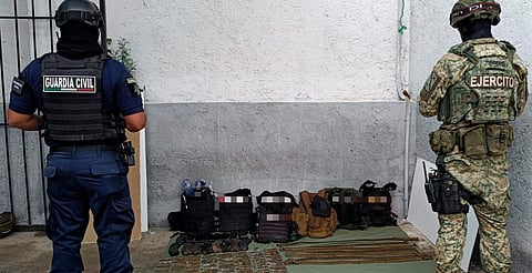 Tras implementar la búsqueda de los presuntos responsables, las fuerzas de seguridad hallaron en un predio siete chalecos tácticos con siglas alusivas a una célula delincuencial, así como los mil 410 cartuchos útiles para diferentes calibres.