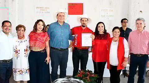 El presidente del Comité Directivo Estatal, Guillermo Valencia Reyes, acompañado de la secretaria general, Xóchitl Ruíz, destacó la trayectoria del buen líder cenecista, "Felipe representa lo que significa hacer carrera política en una organización del PRI; llegó a Vanguardia Juvenil Agrarista fue alcalde y ahora diputado, ejemplo claro de que el que trabaja en el PRI, cosecha", expresó.