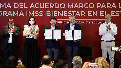 Morelia, Michoacán (MiMorelia.com).- El gobierno federal, a través del Instituto Mexicano del Seguro Social (IMSS) firmó con el gobierno de Michoacán el acuerdo marco para ampliar el Programa IMSS-Bienestar en la entidad, con lo cual se busca beneficiar a las personas que no cuentan con seguridad social.