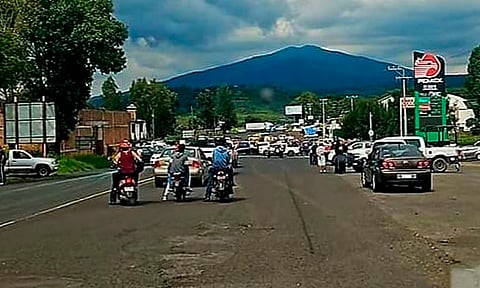 Sobre la carretera a la altura del puente Tocumbo se colocaron vehículos para bloquear la circulación, mientras que el grupo de personas con cartulinas exigen a las autoridades localizar con vida a los tres jóvenes, de los que lo último que se sabe es que desaparecieron en la entrada de Jiquilpan.