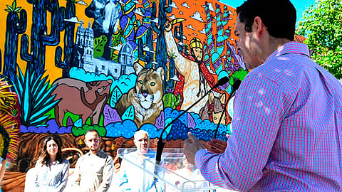Al participar en la inauguración del primer mural monumental de Sahuayo, obra artística que forma parte del programa "RecuperArte" donde se plasmaron elementos culturales que caracterizan a los habitantes de ese lugar, el titular de la Sedeco, quien nació en Sahuayo, destacó la importancia de contribuir a la recuperación de espacios públicos mediante acciones que expresan “lo mucho que somos”.