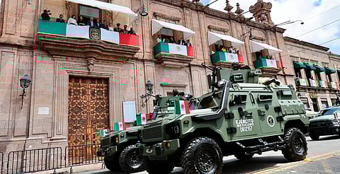 Morelia, Michoacán (MiMorelia.com).- Ante miles de familias que se dieron cita en el corazón de la capital michoacana, el gobernador Alfredo Ramírez Bedolla presenció el Desfile Cívico Militar con motivo del 215 Aniversario del Inicio de la Independencia de México, el cual transcurrió en un ambiente festivo y patriótico.