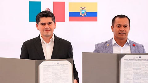 El alcalde Juan Antonio Ixtláhuac y el mandatario de esa localidad ecuatoriana firman este convenio CORTESÍA