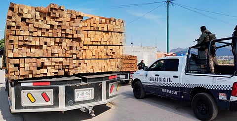Como parte de los patrullajes constantes de inspección de materia prima forestal en esta zona, los agentes revisaron una camioneta de doble rodada, marca Ford que se ubicaba entre las calles Ocampo y Esmeralda, en la colonia La Mangana.