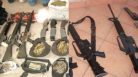 En el automóvil aseguraron dos armas de fuego tipo fusil AR-15 con seis cargadores y 270 cartuchos útiles al calibre 5. 56 milímetros, un arma de fuego tipo fusil AK-47 de los conocidos como “cuerno de chivo” con cinco cargadores y 100 cartuchos útiles al calibre 7.62x39 milímetros, un arma de fuego tipo fusil G3 y un arma de fuego tipo rifle calibre .30-06 milímetros.
