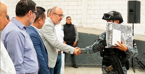 Acompañado por el secretario de Seguridad Pública, Juan Carlos Oseguera Cortés, el encargado de la política interna, a nombre del gobernador Alfredo Ramírez Bedolla, entregó paquetes con botas, camisas y pantalones especialmente diseñados para sus labores de seguridad, a las y los representantes de los cuerpos de vigilancia de las comunidades.