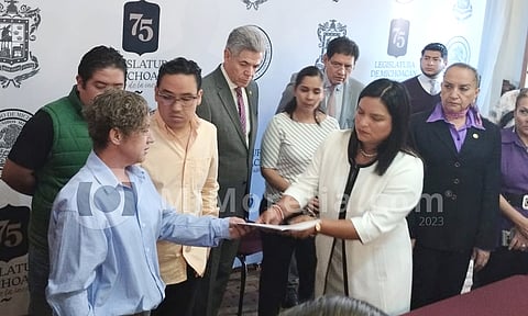 Quien recibió el documento fue la vicepresidenta del Congreso, Eréndira Isauro Hernández, el cual estará pasando a comisiones para determinar el ha lugar y posteriormente al Pleno para ser desechada o turnada para su dictaminación.